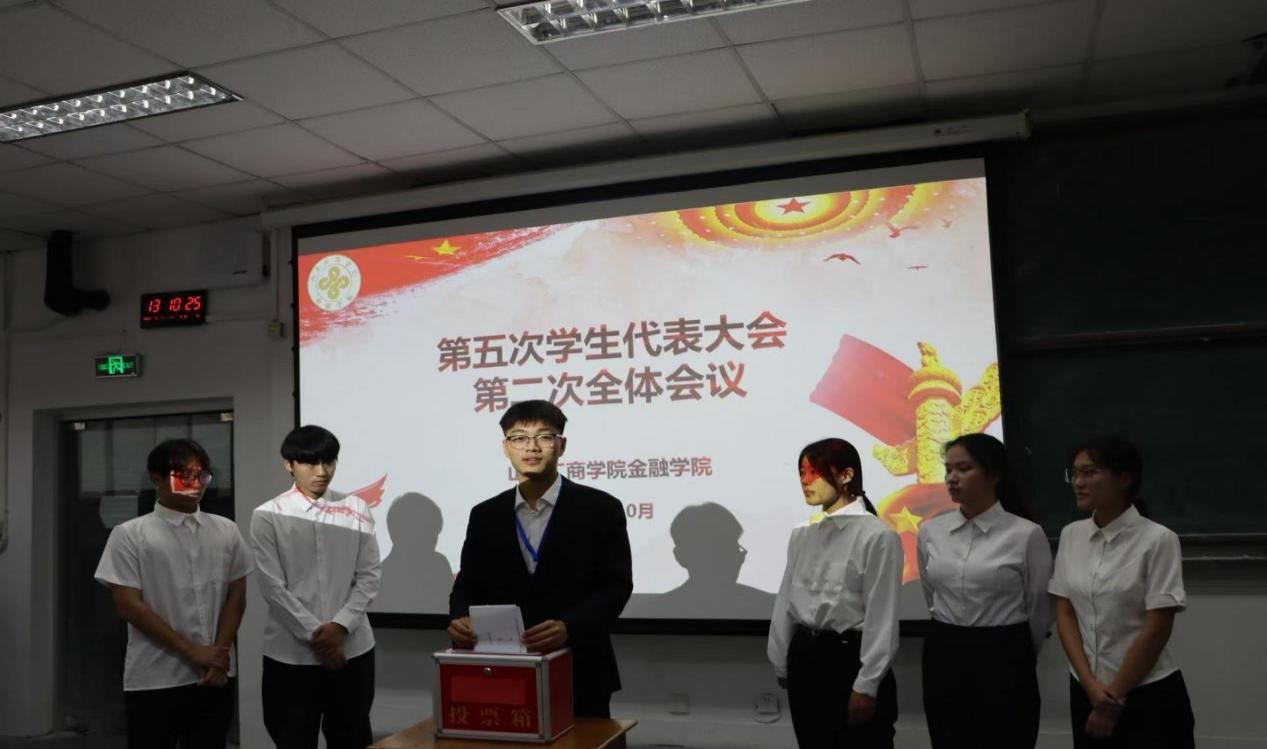 会议通过民主选举产生新当选的金融学院第五次学生代表大会常任代表、新一届学生会主席团成员。同时,审议通过了《山东工商学院金融学院上一届学生会工作报告》《山东工商学院金融学院第五次学生代表大会提案工作报告》《山东工商学院金融学院学生会章程(修正案)》的决议。