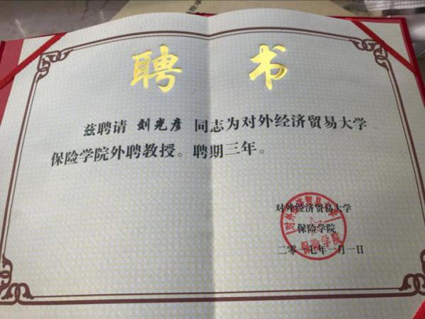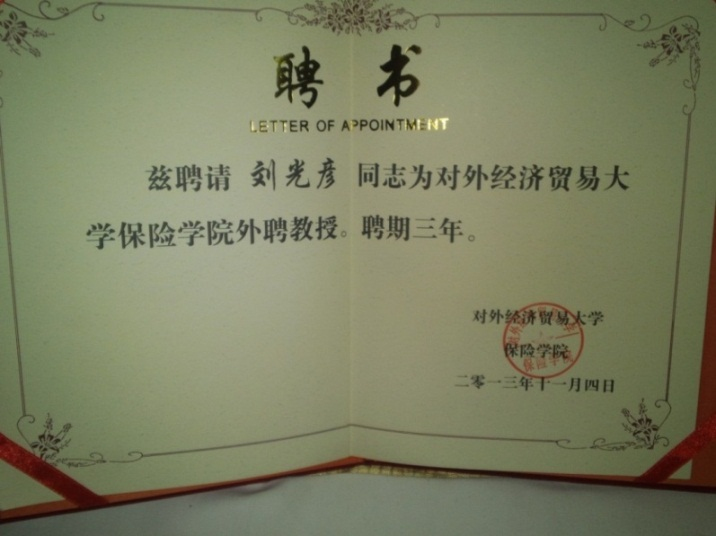 图十三:2013.11被聘为对外经济贸易大学教授