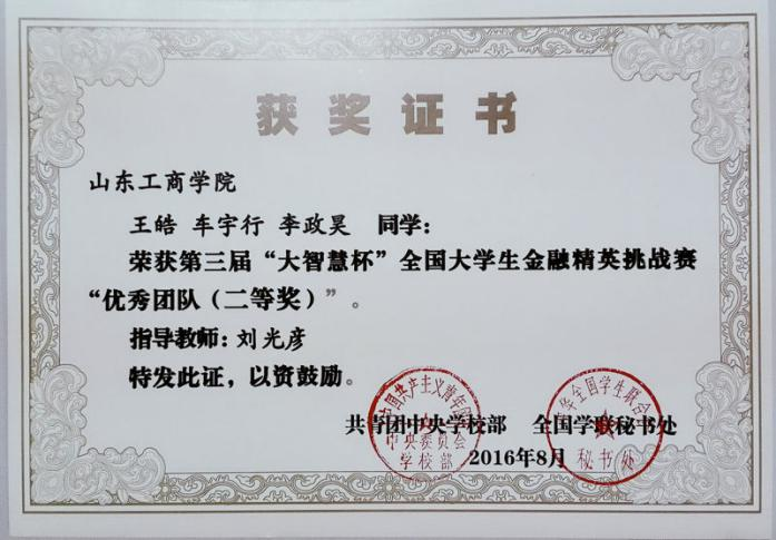 图五:学生获奖证书