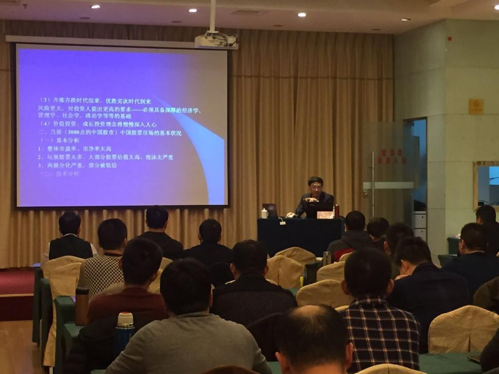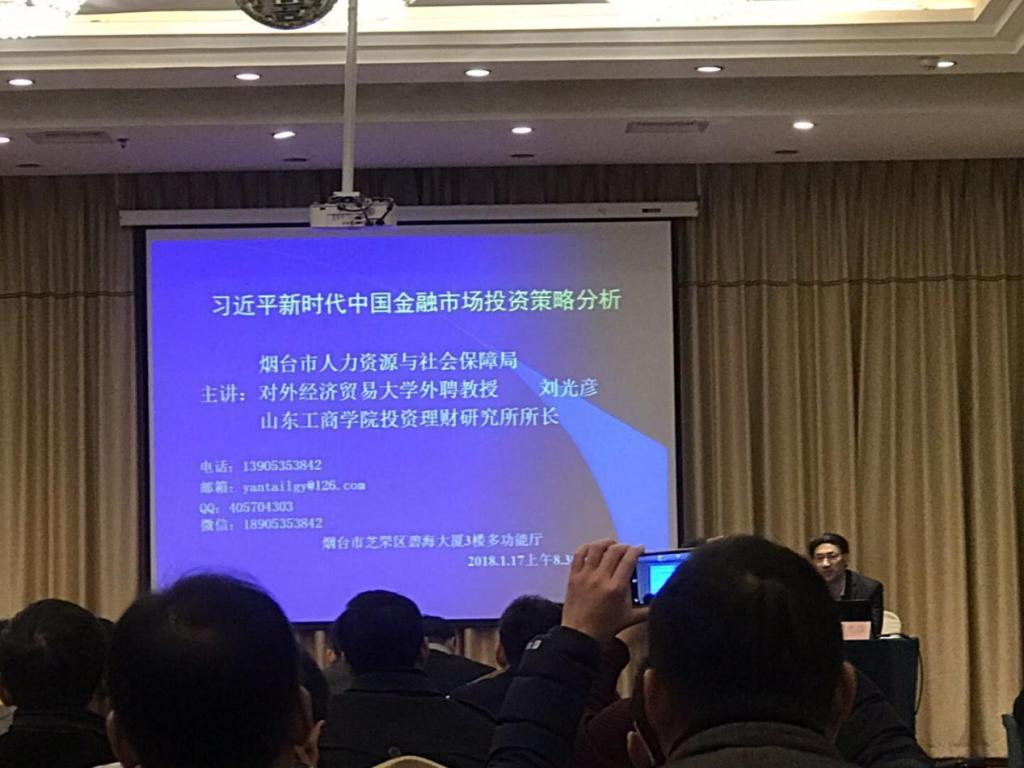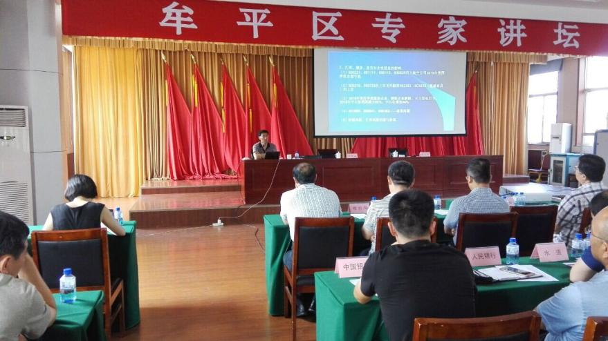 图二:2017年7月14日,山东省烟台市牟平区付县以上干部讲座《供给侧改革背景下我国金融市场运行的新特点及企业和个人的应对》