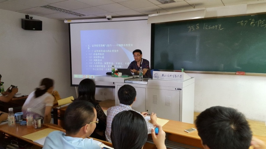图七:2015.7.4—8日为对外经济贸易大学金融学专业15级硕士研究生讲授《股票实操》课