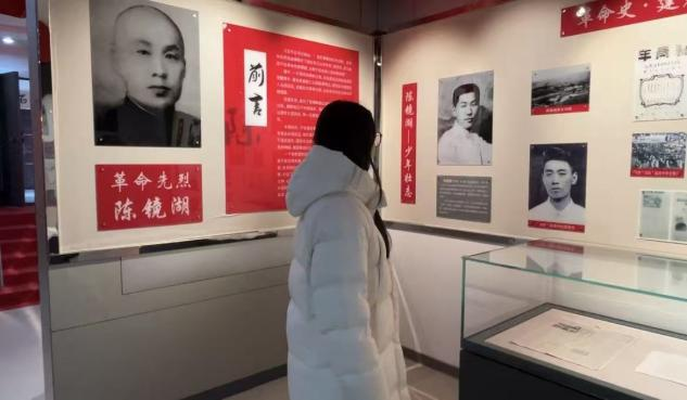 认真聆听讲解员讲述陈镜湖烈士的革命事迹,驻足观看馆内的史料、图片和实物展陈,详细