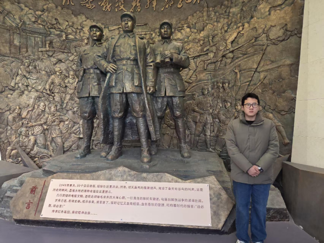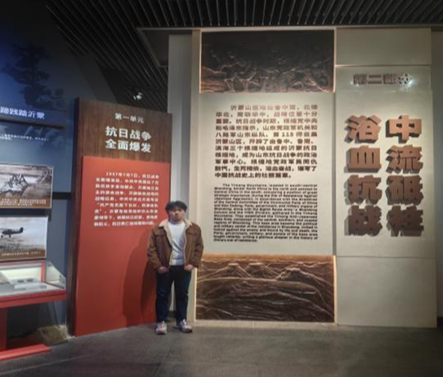 2026年2月8日,柏恒同学参观了临沂市兰山区沂蒙革命纪念馆。他走访各个展区,深入了解沂蒙革命根据地的形成历程、沂蒙儿女的抗日救国壮举,真切触摸那段“水乳交融、生死与共”的红色岁月。在一幅幅珍贵图片、一件件历史实物的浸润下,他进一步坚定了传承红色基因、赓续沂蒙精神的信念,立志以青春之力践行初心使命,让沂蒙精神在新时代绽放新光彩。