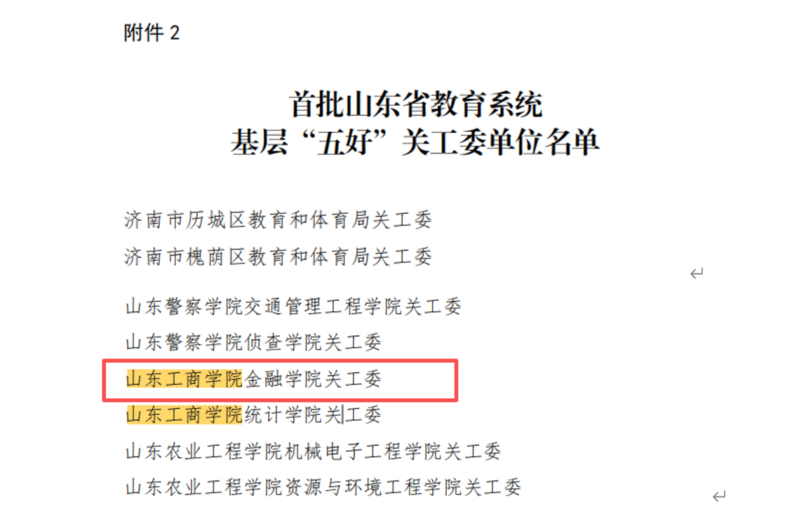 近日,山东省教育厅关心下一代工作委员会发布《关于公布首批山东省教育系统基层“五好”关工委单位的通知》,金融学院关工委成功入选首批山东省教育系统基层“五好”关工委单位,这是学院在关心下一代工作领域获得的重要省级荣誉。